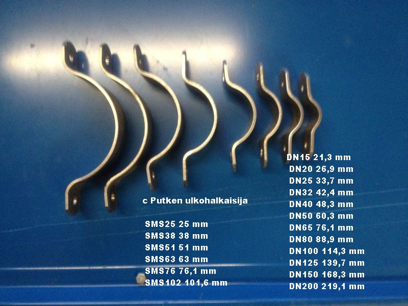 Elintarviketeollisuuden putkia, uusia ja käytettyjä. Kokoja 51, 63,76,100